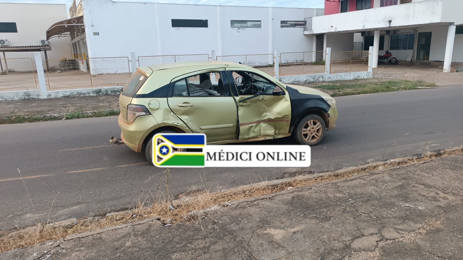 Um acidente de trânsito foi registrado na manhã desta quinta-feira (23) no cruzamento da Avenida Macapá com a Rua Nova Brasília, em Presidente Médici (RO). A colisão envolveu um automóvel e uma motocicleta. O condutor da moto filmava o trajeto no momento do acidente.