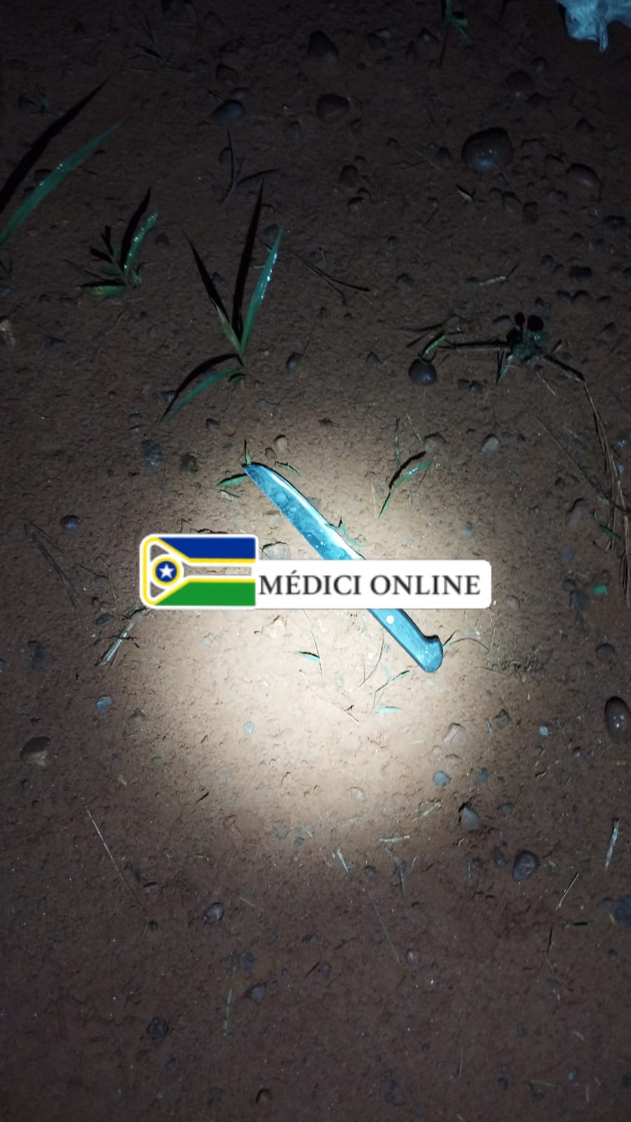 De acordo com o relato policial, equipes das guarnições da PM foram mobilizadas logo após o chamado via Central de Operações (190) e realizaram um cerco nas imediações da rodovia. Pouco tempo depois, o suspeito, conhecido pelo apelido de “João Leva Tudo”, foi localizado em uma linha vicinal que dá acesso à BR-429. Durante a abordagem, ele foi encontrado com uma faca e vestia uma jaqueta preta e azul. Os policiais constataram ainda que o homem usava tornozeleira eletrônica envolta em papel alumínio, possivelmente para bloquear o sinal de rastreamento.